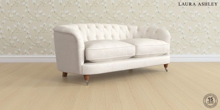 7.3.1 Buy Hathersage by Laura Ashley 3 Seater Small Sofa Anneliese Oyster Natural Low Chrome Castor - Teak from the Seasons online shop Click here to use our website with more accessibility support, for example screen readers