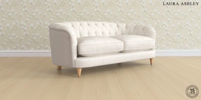 7.3.1 Buy Hathersage by Laura Ashley 3 Seater Small Sofa Anneliese Oyster Natural Low Turned - Light Oak from the Seasons online shop Click here to use our website with more accessibility support, for example screen readers