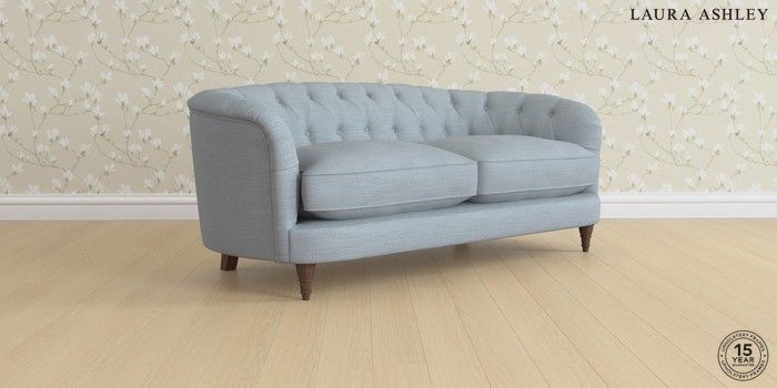 7.3.1 Buy Hathersage by Laura Ashley 3 Seater Small Sofa Kinsham Seaspray Blue Low Turned - Chestnut from the Seasons online shop Click here to use our website with more accessibility support, for example screen readers