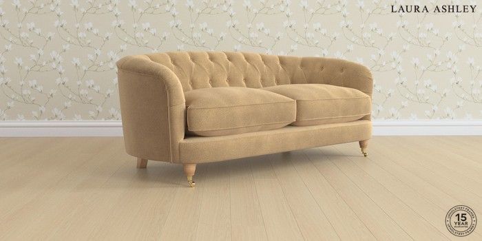 7.3.1 Buy Hathersage by Laura Ashley 3 Seater Small Sofa Lundar Chenille Caramel Natural Low Brass Castor - Light Oak from the Seasons online shop Click here to use our website with more accessibility support, for example screen readers