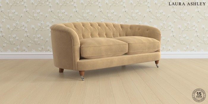 7.3.1 Buy Hathersage by Laura Ashley 3 Seater Small Sofa Lundar Chenille Caramel Natural Low Chrome Castor - Teak from the Seasons online shop Click here to use our website with more accessibility support, for example screen readers