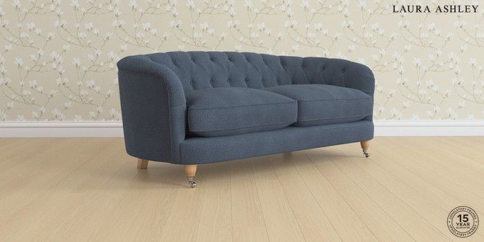7.3.1 Buy Hathersage by Laura Ashley 3 Seater Small Sofa Lundar Chenille Navy Blue Low Chrome Castor - Light Oak from the Seasons online shop Click here to use our website with more accessibility support, for example screen readers