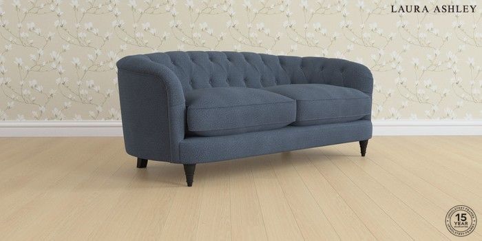 7.3.1 Buy Hathersage by Laura Ashley 3 Seater Small Sofa Lundar Chenille Navy Blue Low Turned - Black from the Seasons online shop Click here to use our website with more accessibility support, for example screen readers