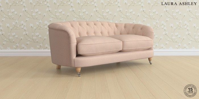 7.3.1 Buy Hathersage by Laura Ashley 3 Seater Small Sofa Melbreak Geo Chalk Pink Low Chrome Castor - Light Oak from the Seasons online shop Click here to use our website with more accessibility support, for example screen readers