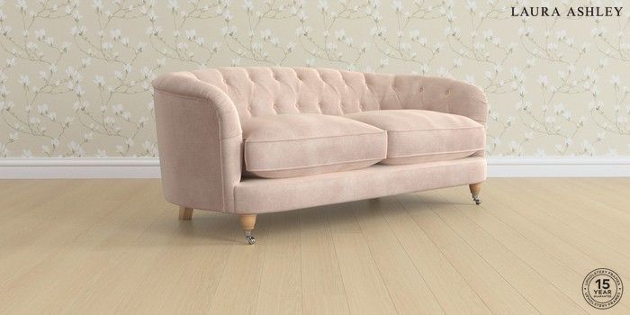 7.3.1 Buy Hathersage by Laura Ashley 3 Seater Small Sofa Orla Chalk Pink Low Chrome Castor - Light Oak from the Seasons online shop Click here to use our website with more accessibility support, for example screen readers