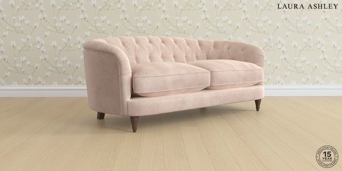 7.3.1 Buy Hathersage by Laura Ashley 3 Seater Small Sofa Orla Chalk Pink Low Turned - Chestnut from the Seasons online shop Click here to use our website with more accessibility support, for example screen readers