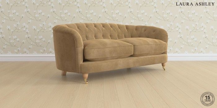 7.3.1 Buy Hathersage by Laura Ashley 3 Seater Small Sofa Orla Gold Natural Low Brass Castor - Light Oak from the Seasons online shop Click here to use our website with more accessibility support, for example screen readers
