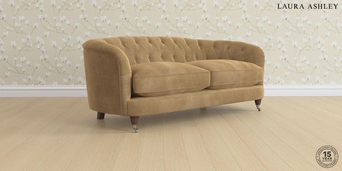 7.3.1 Buy Hathersage by Laura Ashley 3 Seater Small Sofa Orla Gold Natural Low Chrome Castor - Chestnut from the Seasons online shop Click here to use our website with more accessibility support, for example screen readers