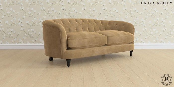 7.3.1 Buy Hathersage by Laura Ashley 3 Seater Small Sofa Orla Gold Natural Low Turned - Black from the Seasons online shop Click here to use our website with more accessibility support, for example screen readers