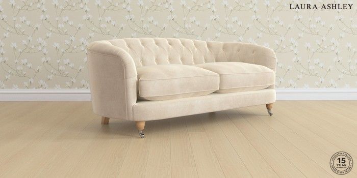 7.3.1 Buy Hathersage by Laura Ashley 3 Seater Small Sofa Orla Oyster Natural Low Chrome Castor - Light Oak from the Seasons online shop Click here to use our website with more accessibility support, for example screen readers