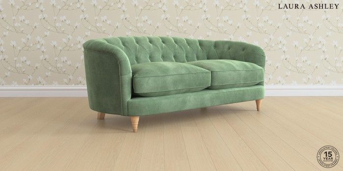 7.3.1 Buy Hathersage by Laura Ashley 3 Seater Small Sofa Orla Pale Hedgerow Green Low Turned - Light Oak from the Seasons online shop Click here to use our website with more accessibility support, for example screen readers