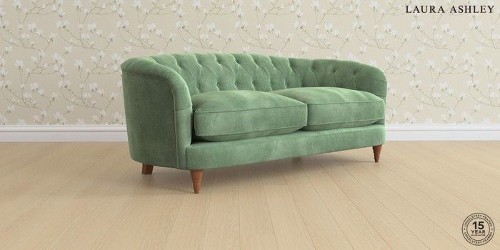 7.3.1 Buy Hathersage by Laura Ashley 3 Seater Small Sofa Orla Pale Hedgerow Green Low Turned - Teak from the Seasons online shop Click here to use our website with more accessibility support, for example screen readers