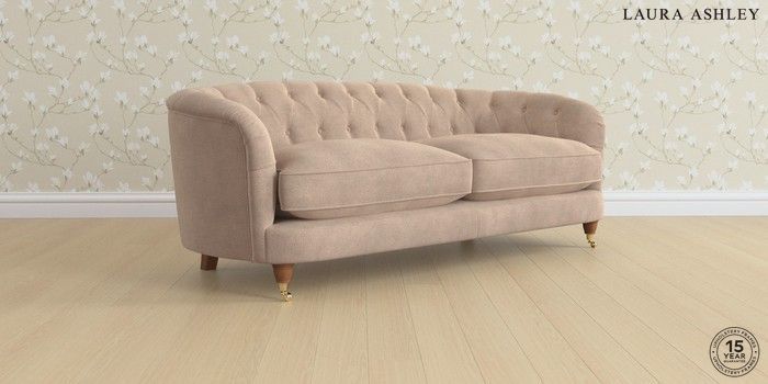 7.3.1 Buy Hathersage by Laura Ashley 3 Seater Sofa Ailsworth Mink Natural Low Brass Castor - Teak from the Seasons online shop Click here to use our website with more accessibility support, for example screen readers