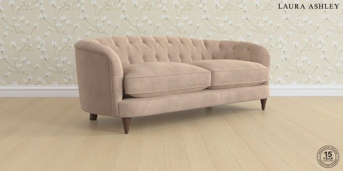 7.3.1 Buy Hathersage by Laura Ashley 3 Seater Sofa Ailsworth Mink Natural Low Turned - Chestnut from the Seasons online shop Click here to use our website with more accessibility support, for example screen readers