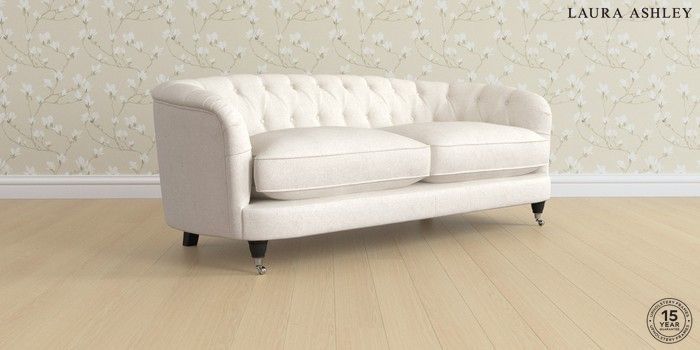7.3.1 Buy Hathersage by Laura Ashley 3 Seater Sofa Anneliese Oyster Natural Low Chrome Castor - Black from the Seasons online shop Click here to use our website with more accessibility support, for example screen readers