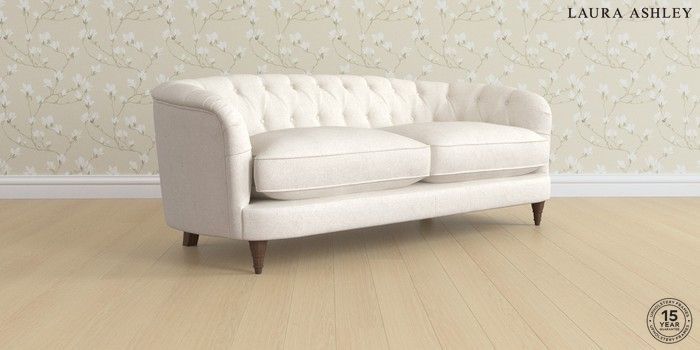 7.3.1 Buy Hathersage by Laura Ashley 3 Seater Sofa Anneliese Oyster Natural Low Turned - Chestnut from the Seasons online shop Click here to use our website with more accessibility support, for example screen readers