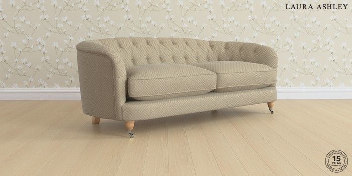 7.3.1 Buy Hathersage by Laura Ashley 3 Seater Sofa Chequers Hazelnut Natural Low Chrome Castor - Light Oak from the Seasons online shop Click here to use our website with more accessibility support, for example screen readers
