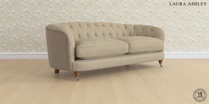 7.3.1 Buy Hathersage by Laura Ashley 3 Seater Sofa Chequers Hazelnut Natural Low Chrome Castor - Teak from the Seasons online shop Click here to use our website with more accessibility support, for example screen readers