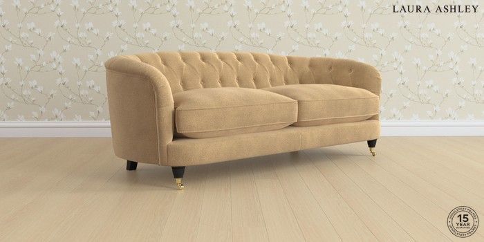 7.3.1 Buy Hathersage by Laura Ashley 3 Seater Sofa Lundar Chenille Caramel Natural Low Brass Castor - Black from the Seasons online shop Click here to use our website with more accessibility support, for example screen readers