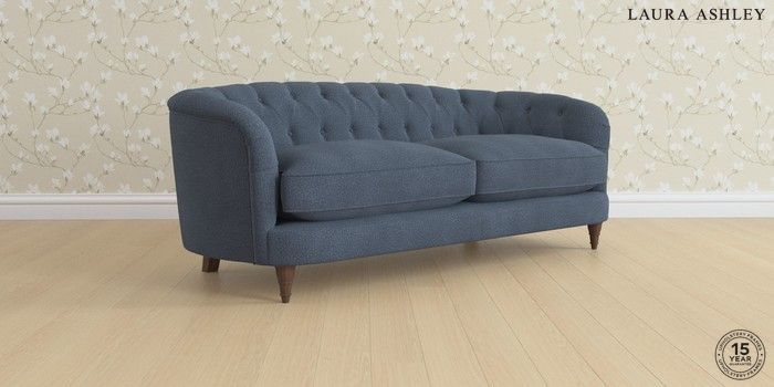 7.3.1 Buy Hathersage by Laura Ashley 3 Seater Sofa Lundar Chenille Navy Blue Low Turned - Chestnut from the Seasons online shop Click here to use our website with more accessibility support, for example screen readers