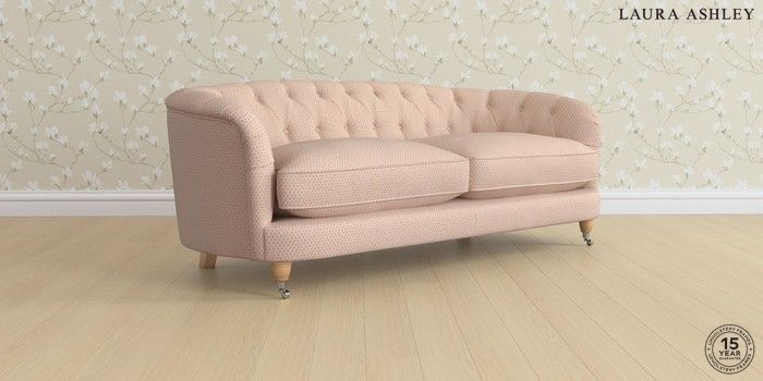 7.3.1 Buy Hathersage by Laura Ashley 3 Seater Sofa Melbreak Geo Chalk Pink Low Chrome Castor - Light Oak from the Seasons online shop Click here to use our website with more accessibility support, for example screen readers