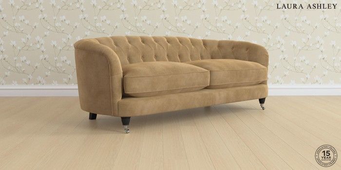 7.3.1 Buy Hathersage by Laura Ashley 3 Seater Sofa Orla Gold Natural Low Chrome Castor - Black from the Seasons online shop Click here to use our website with more accessibility support, for example screen readers