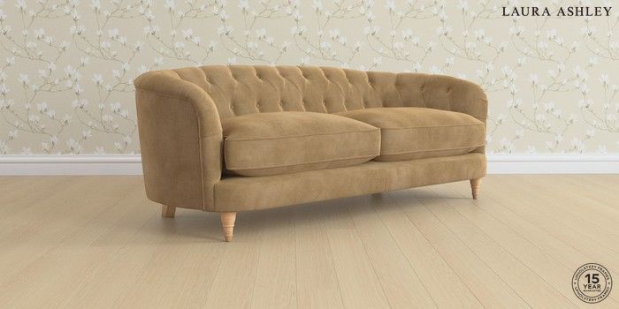 7.3.1 Buy Hathersage by Laura Ashley 3 Seater Sofa Orla Gold Natural Low Turned - Light Oak from the Seasons online shop Click here to use our website with more accessibility support, for example screen readers