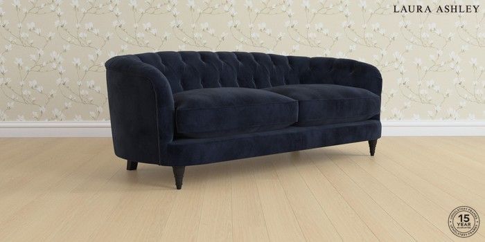 7.3.1 Buy Hathersage by Laura Ashley 3 Seater Sofa Orla Midnight Navy Low Turned - Black from the Seasons online shop Click here to use our website with more accessibility support, for example screen readers