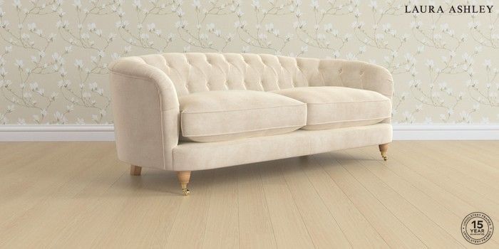 7.3.1 Buy Hathersage by Laura Ashley 3 Seater Sofa Orla Oyster Natural Low Brass Castor - Light Oak from the Seasons online shop Click here to use our website with more accessibility support, for example screen readers