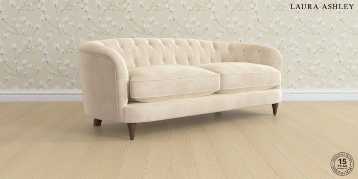 7.3.1 Buy Hathersage by Laura Ashley 3 Seater Sofa Orla Oyster Natural Low Turned - Chestnut from the Seasons online shop Click here to use our website with more accessibility support, for example screen readers