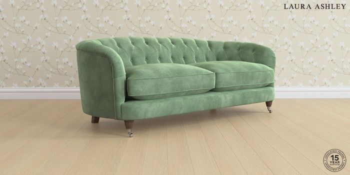 7.3.1 Buy Hathersage by Laura Ashley 3 Seater Sofa Orla Pale Hedgerow Green Low Chrome Castor - Chestnut from the Seasons online shop Click here to use our website with more accessibility support, for example screen readers