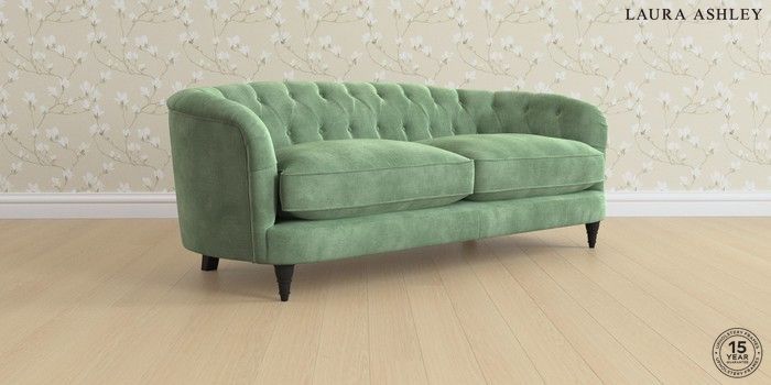 7.3.1 Buy Hathersage by Laura Ashley 3 Seater Sofa Orla Pale Hedgerow Green Low Turned - Black from the Seasons online shop Click here to use our website with more accessibility support, for example screen readers