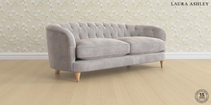 7.3.1 Buy Hathersage by Laura Ashley 3 Seater Sofa Orla Pale Steel Grey Low Turned - Light Oak from the Seasons online shop Click here to use our website with more accessibility support, for example screen readers