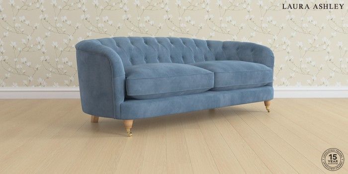 7.3.1 Buy Hathersage by Laura Ashley 3 Seater Sofa Orla Seaspray Blue Low Brass Castor - Light Oak from the Seasons online shop Click here to use our website with more accessibility support, for example screen readers