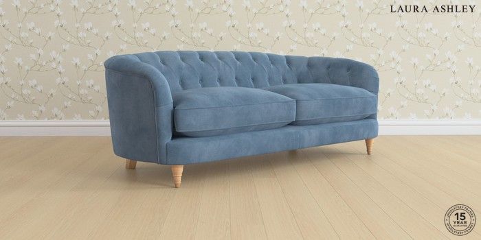 7.3.1 Buy Hathersage by Laura Ashley 3 Seater Sofa Orla Seaspray Blue Low Turned - Light Oak from the Seasons online shop Click here to use our website with more accessibility support, for example screen readers