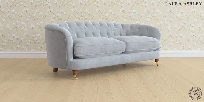 7.3.1 Buy Hathersage by Laura Ashley 3 Seater Sofa Peyton Powder Blue Low Brass Castor - Teak from the Seasons online shop Click here to use our website with more accessibility support, for example screen readers