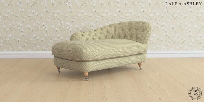 7.3.1 Buy Hathersage by Laura Ashley Chaise Longue Left Hand Chequers Hedgerow Green Low Chrome Castor - Light Oak from the Seasons online shop Click here to use our website with more accessibility support, for example screen readers