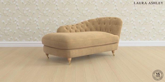 7.3.1 Buy Hathersage by Laura Ashley Chaise Longue Left Hand Lundar Chenille Caramel Natural Low Brass Castor - Light Oak from the Seasons online shop Click here to use our website with more accessibility support, for example screen readers
