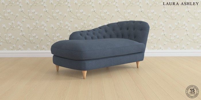 7.3.1 Buy Hathersage by Laura Ashley Chaise Longue Left Hand Lundar Chenille Navy Blue Low Turned - Light Oak from the Seasons online shop Click here to use our website with more accessibility support, for example screen readers
