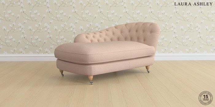 7.3.1 Buy Hathersage by Laura Ashley Chaise Longue Left Hand Melbreak Geo Chalk Pink Low Chrome Castor - Light Oak from the Seasons online shop Click here to use our website with more accessibility support, for example screen readers