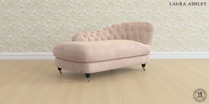 7.3.1 Buy Hathersage by Laura Ashley Chaise Longue Left Hand Orla Chalk Pink Low Chrome Castor - Black from the Seasons online shop Click here to use our website with more accessibility support, for example screen readers