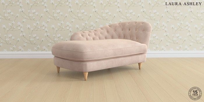 7.3.1 Buy Hathersage by Laura Ashley Chaise Longue Left Hand Orla Chalk Pink Low Turned - Light Oak from the Seasons online shop Click here to use our website with more accessibility support, for example screen readers