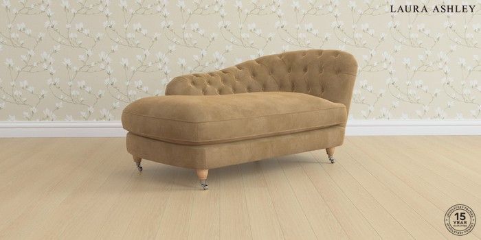 7.3.1 Buy Hathersage by Laura Ashley Chaise Longue Left Hand Orla Gold Natural Low Chrome Castor - Light Oak from the Seasons online shop Click here to use our website with more accessibility support, for example screen readers