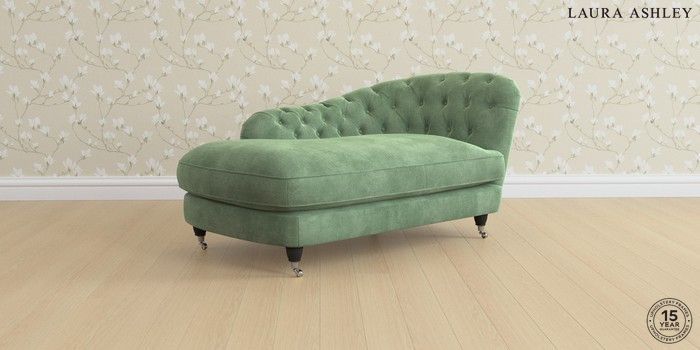 7.3.1 Buy Hathersage by Laura Ashley Chaise Longue Left Hand Orla Pale Hedgerow Green Low Chrome Castor - Black from the Seasons online shop Click here to use our website with more accessibility support, for example screen readers