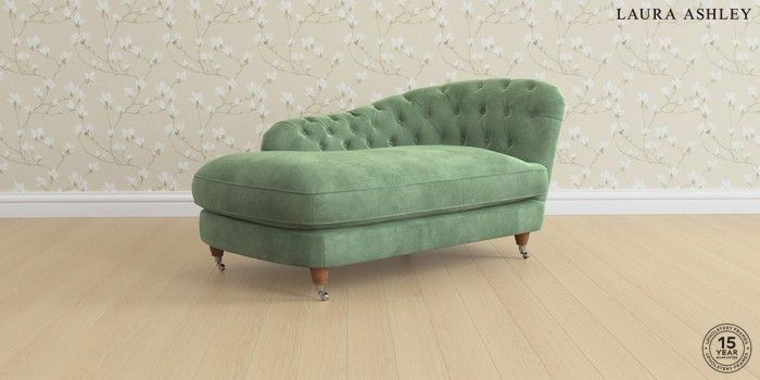 7.3.1 Buy Hathersage by Laura Ashley Chaise Longue Left Hand Orla Pale Hedgerow Green Low Chrome Castor - Teak from the Seasons online shop Click here to use our website with more accessibility support, for example screen readers