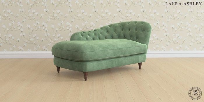 7.3.1 Buy Hathersage by Laura Ashley Chaise Longue Left Hand Orla Pale Hedgerow Green Low Turned - Chestnut from the Seasons online shop Click here to use our website with more accessibility support, for example screen readers