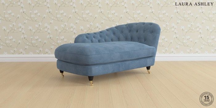 7.3.1 Buy Hathersage by Laura Ashley Chaise Longue Left Hand Orla Seaspray Blue Low Brass Castor - Black from the Seasons online shop Click here to use our website with more accessibility support, for example screen readers