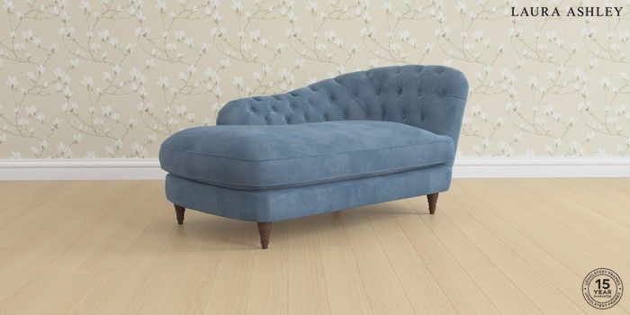 7.3.1 Buy Hathersage by Laura Ashley Chaise Longue Left Hand Orla Seaspray Blue Low Turned - Chestnut from the Seasons online shop Click here to use our website with more accessibility support, for example screen readers
