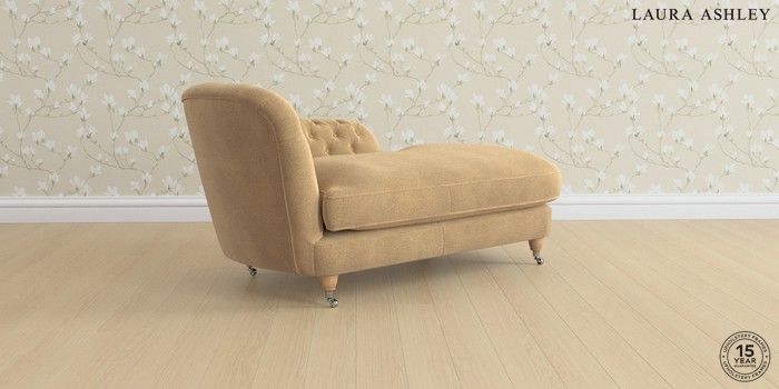 7.3.1 Buy Hathersage by Laura Ashley Chaise Longue Right Hand Lundar Chenille Caramel Natural Low Chrome Castor - Light Oak from the Seasons online shop Click here to use our website with more accessibility support, for example screen readers