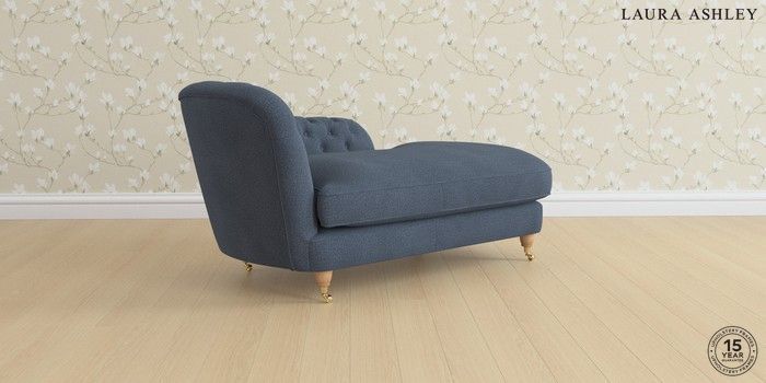 7.3.1 Buy Hathersage by Laura Ashley Chaise Longue Right Hand Lundar Chenille Navy Blue Low Brass Castor - Light Oak from the Seasons online shop Click here to use our website with more accessibility support, for example screen readers